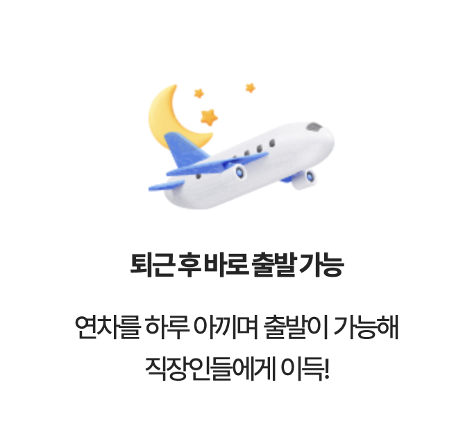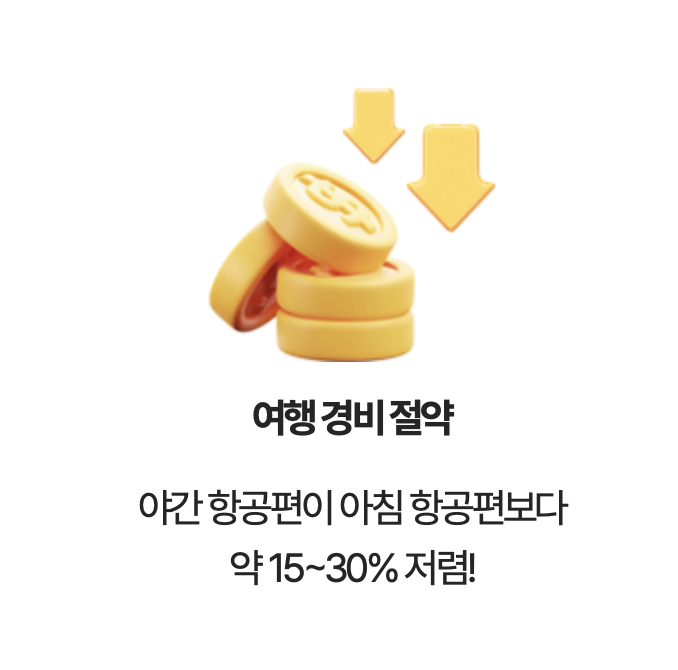 또한 동일 구간 대비 야간 항공편이 비용도 저렴하니 정말 1석2조!