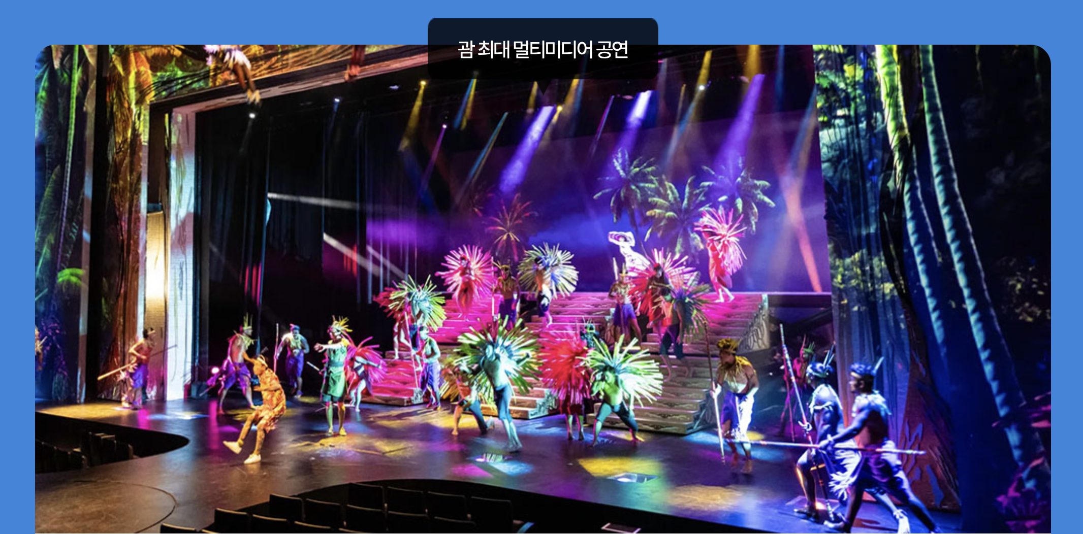 낮에는 괌의 맑고 푸른 바다에서 돌고래를 관할하면서 스노클링을 하고, 밤에는 반짝이는 별빛 아래에서 화려한 무대 공연을 본다면 정말 마음까지 힐링되는 특별한 경험이 되겠죠?