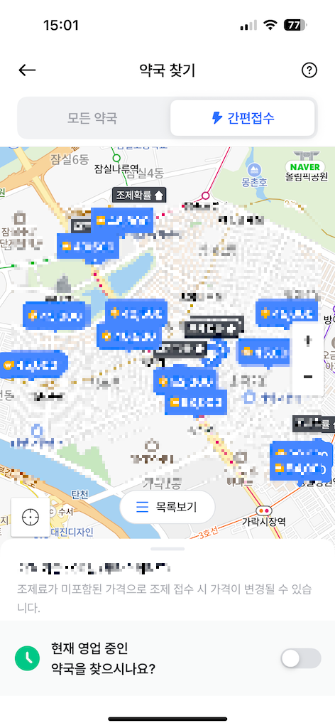 약국 지도에 표시된 정보를 참고해 집이나 직장과 가까운 곳을 선택하면 수령이 편하겠죠?