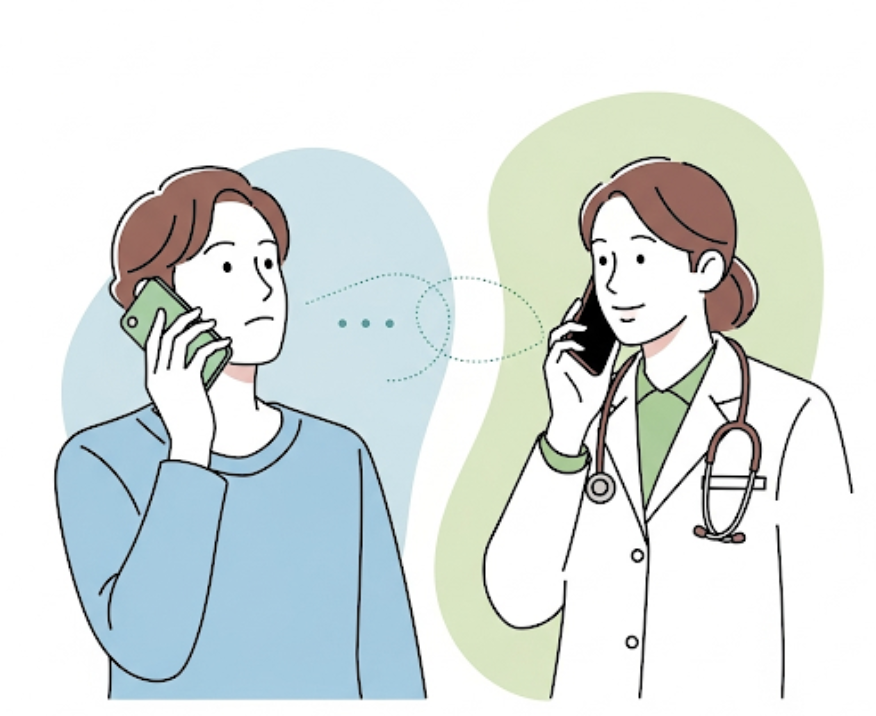 A. 예약 시간에 통화 가능한 상태인지 확인하고, 알림이 꺼져 있지 않은지 점검하세요. 발신 번호가 병원 대표번호와 다를 수 있습니다.
