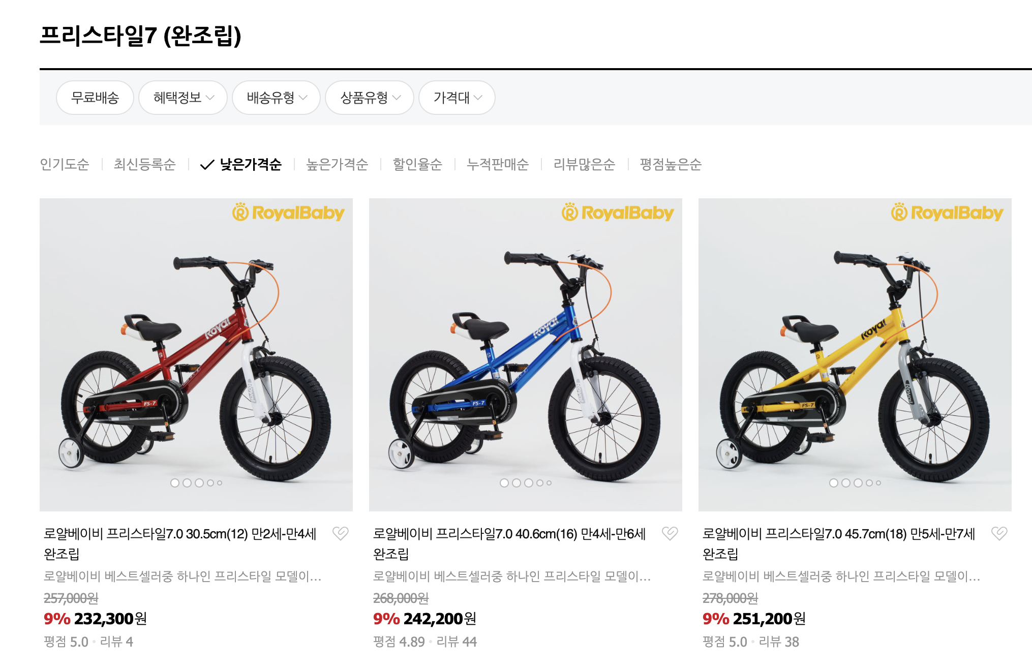 처음에는 집 앞의 삼천*, 레스* 에서 자전거를 구입할까 했지만 로얄베이비의 디자인 퀄리티나 브랜드 신뢰도를 보고난 뒤에는 다른 걸 살 수 없겠더라고요.