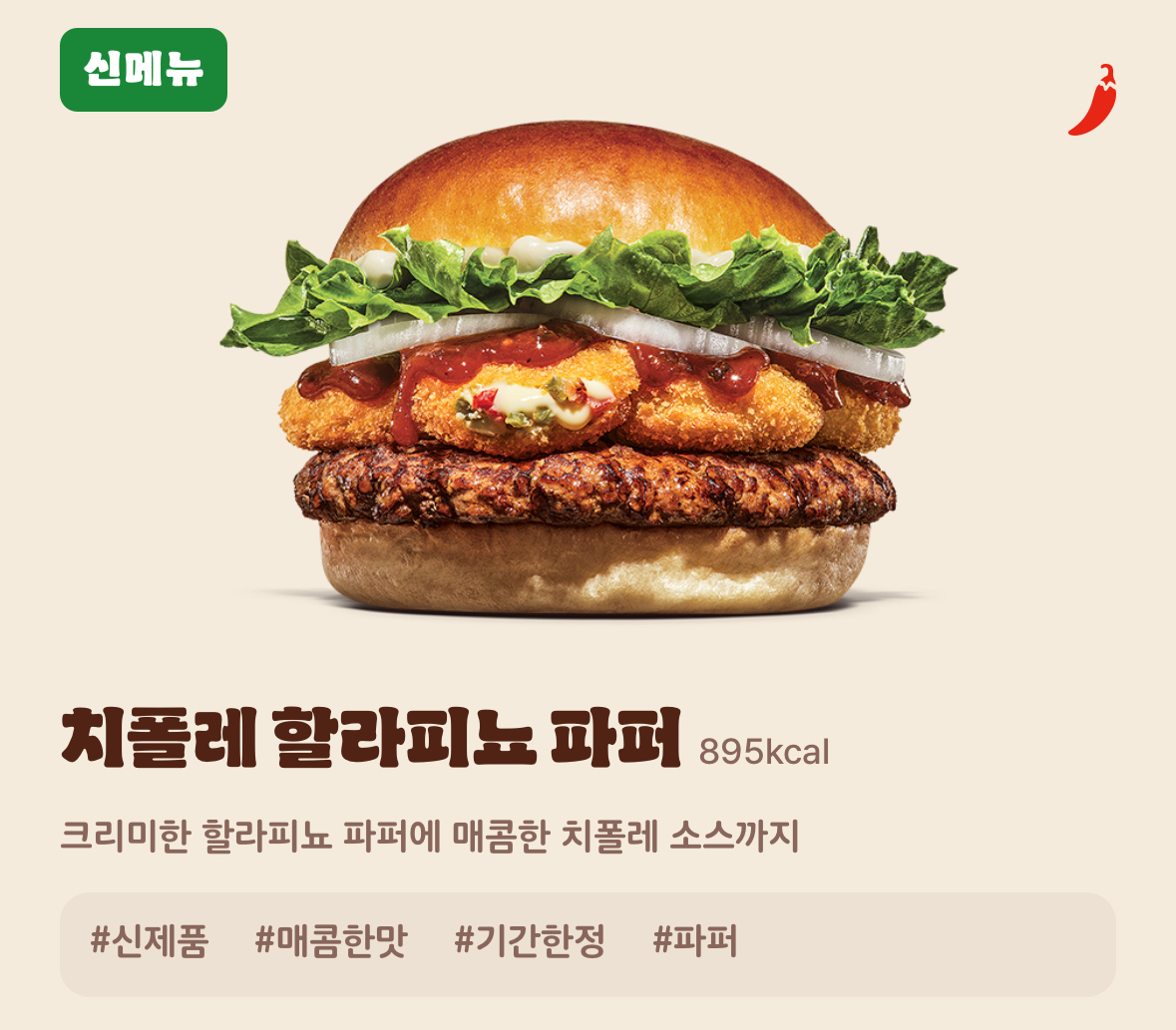 이번 8월 4주차 인기 메뉴들을 보면 매콤하고 진한 풍미의 버거들이 특히 사랑받고 있다는 걸 느낄 수 있었습니다.