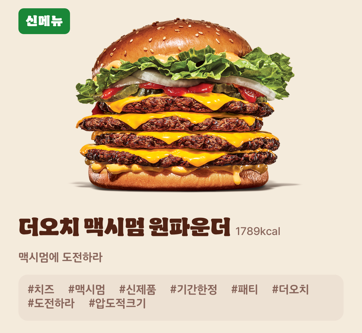 2위 더오치 맥시멈3 더블패티+매콤한 토핑