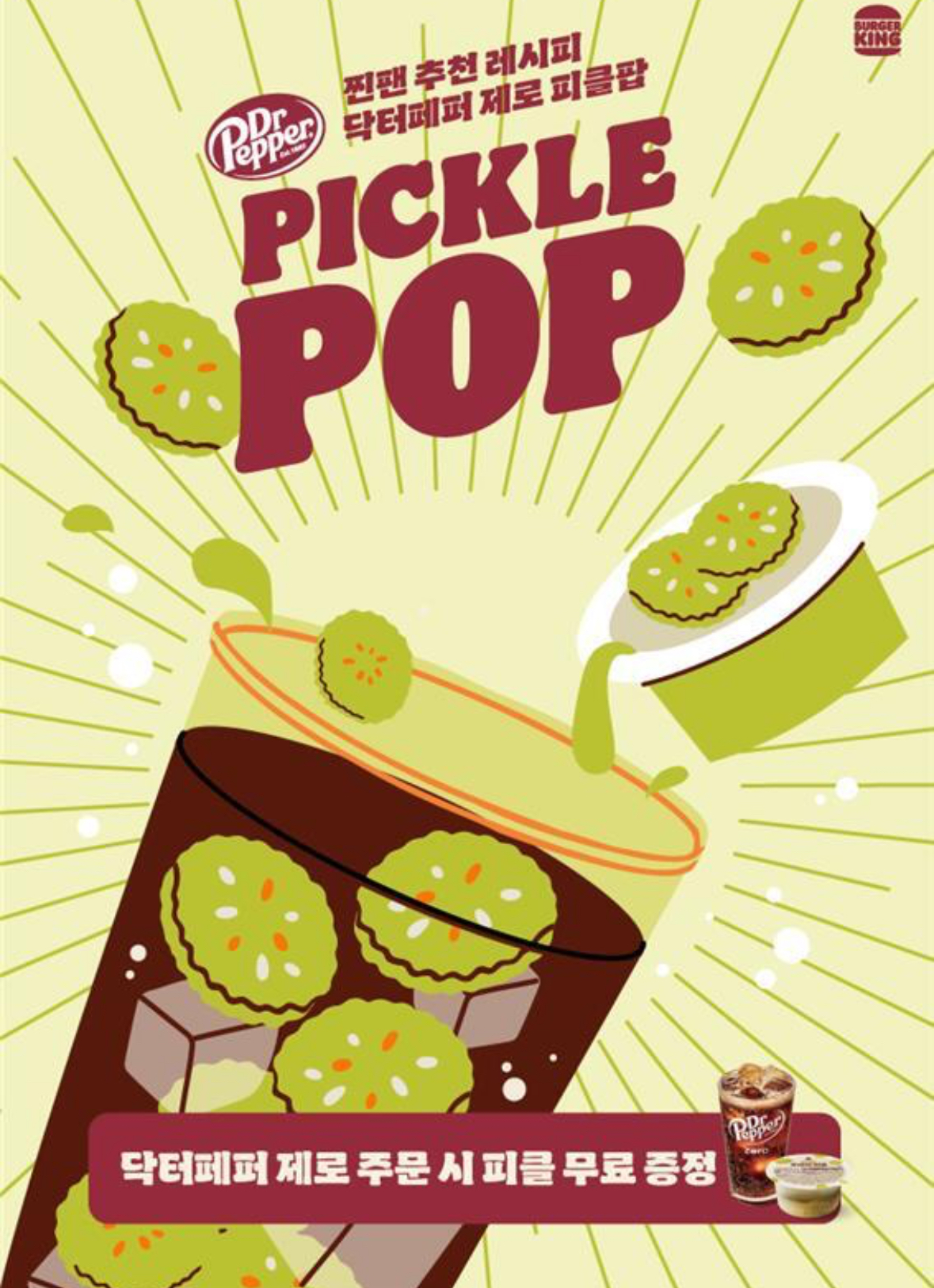 사실 이 닥터페퍼 제로 피클팝은 호불호가 갈리는 메뉴이긴 한데요. 닥터페퍼 제로를 주문하면 피클을 무료로 제공하는 이색적인 이벤트 진행하고 있습니다. 어짜피 음료를 구입하면 피클 하나 공짜로 얻는거니까 도전 정신이 있으신 분들은 드셔보셔도 좋을 것 같습니다.