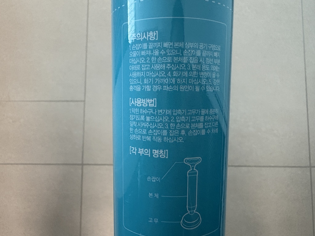 망설임 없이 펌프식 뚫어뻥을 구매했고, 뚫어뻥 사용은 처음이었지만 제품 설명서에 사용법이 자세히 적혀 있어서 큰 어려움은 없었습니다.