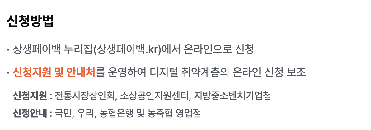 - 온라인 신청: 상생페이백 공식 홈페이지(상생페이백.kr) 접속 후 본인 명의 카드 등록