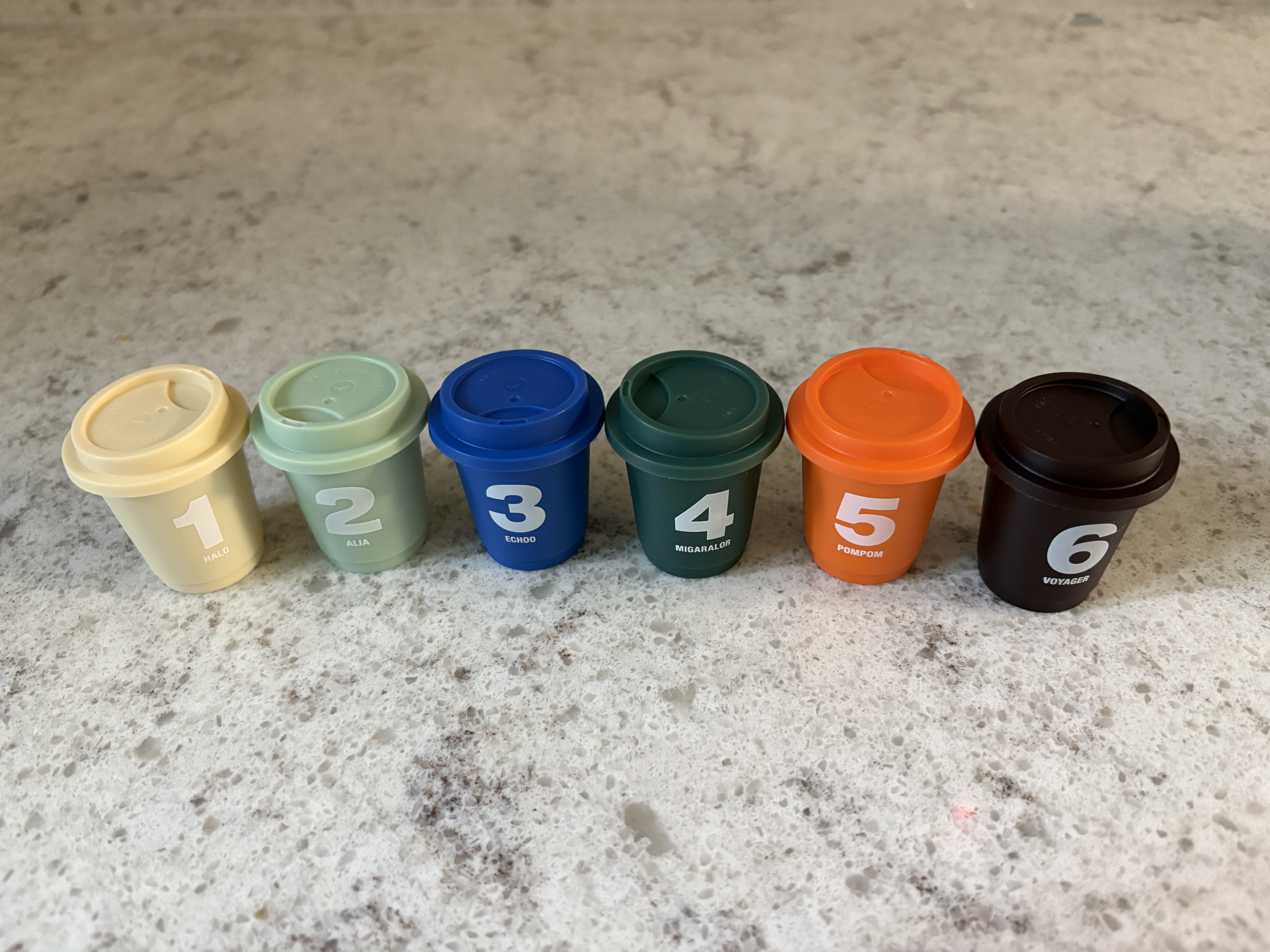 하나하나 작은 캡슐처럼 생긴 미니컵에 담겨 있어 보관도 편하고, 사무실 옆사람 사람들에게 하나씩 주어도 손색없을 것 같더라고요.