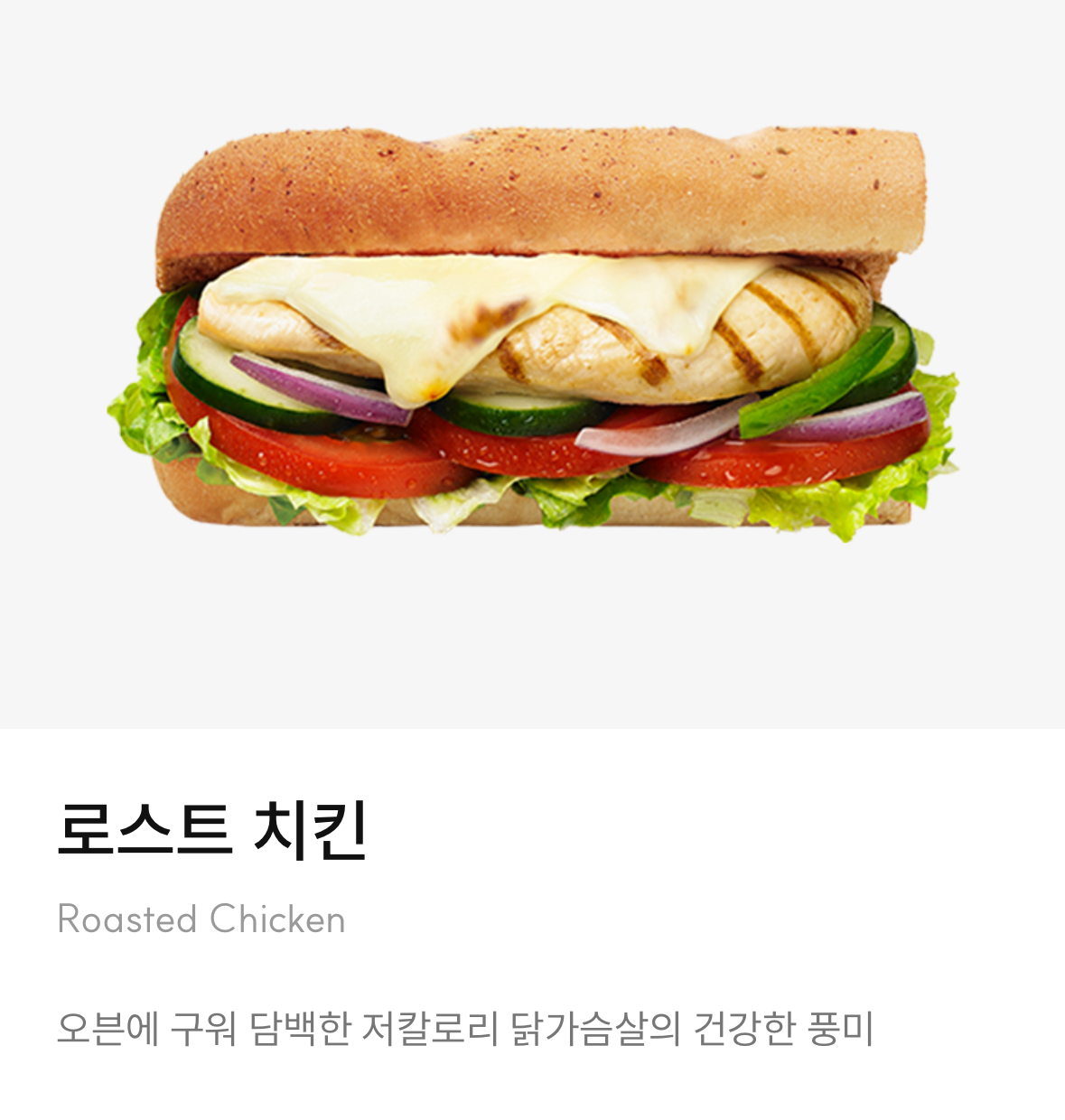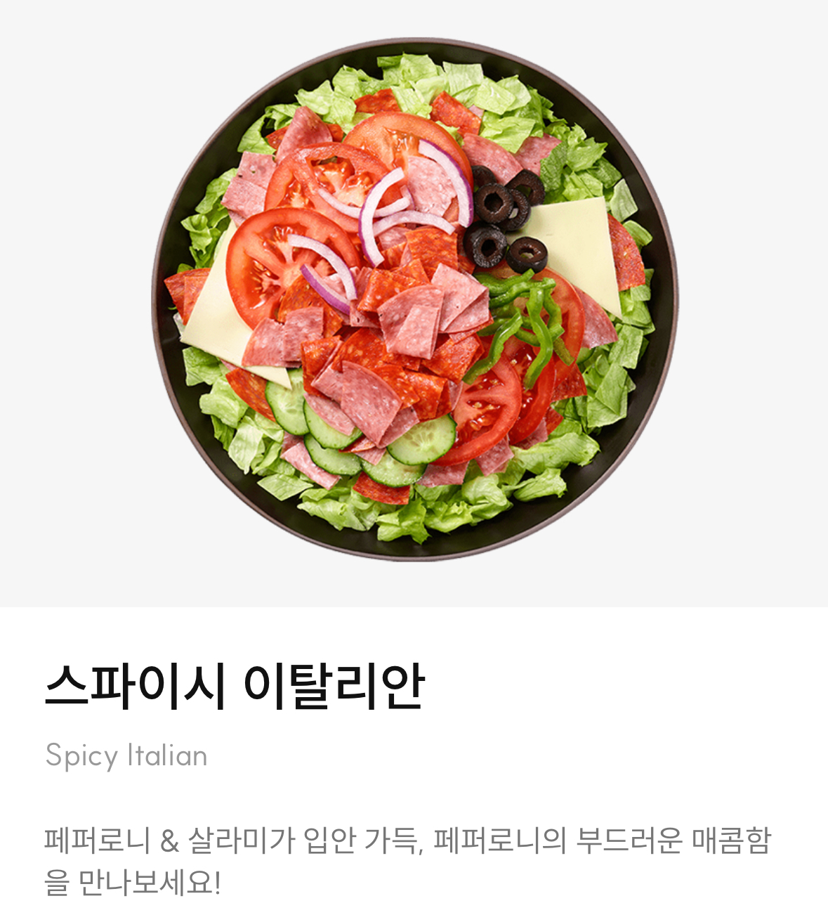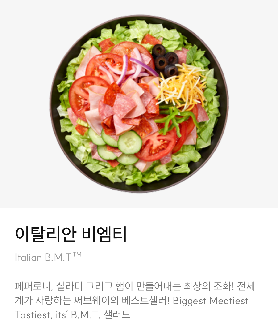 (예 : 로스트 치킨 샐러드로 주세요. / 이탈리안 BMT 샐러드로 주세요.)