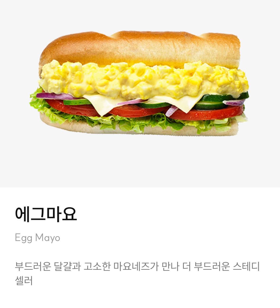 - 메뉴 선택: 에그마요, 이탈리안 BMT, 로티세리 치킨 등 인기 메뉴에서 선택