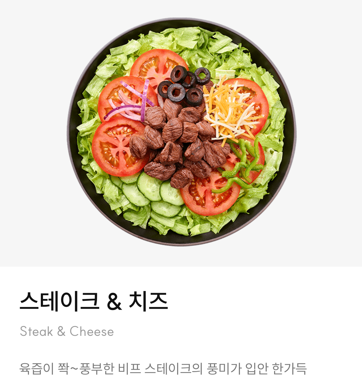 탄수화물을 줄이려고 하시는 분들은 똑같은 주문 방법으로 샌드위치 대신 샐러드를 선택할 수도 있어 선택의 폭이 더욱 넓습니다.