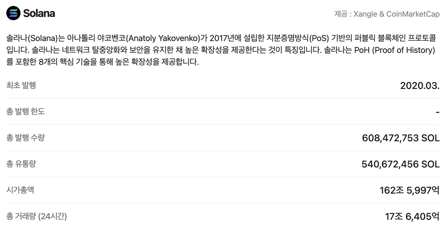 솔라나는 2017년 아나톨리 야코벤코가 지분증명방식 기반으로 개발한 코인으로 빠른 처리속도를 앞세워 '이더리움 킬러'로 주목을 받았죠.