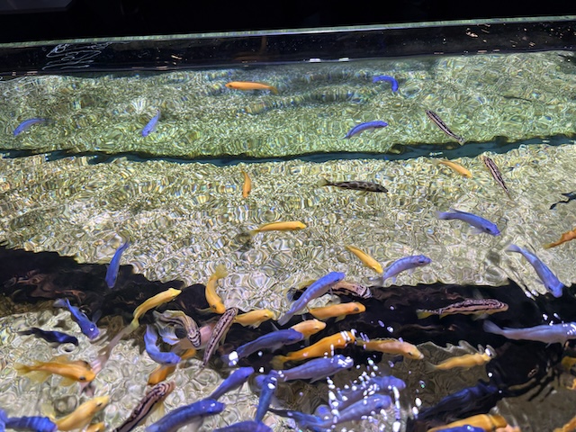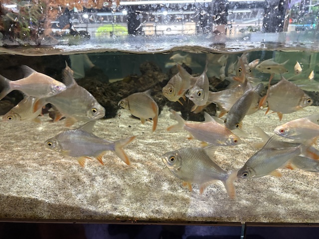 물고기들이 먹이를 엄청 열심히 먹어서 아이들이 너무 좋아했습니다.