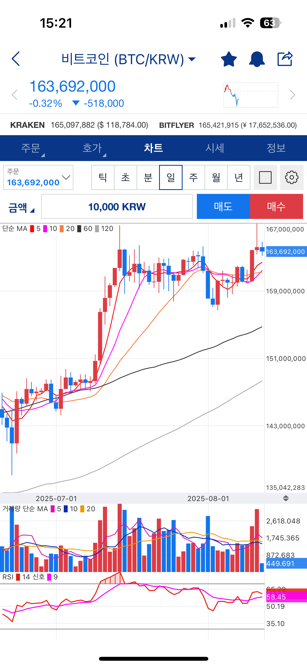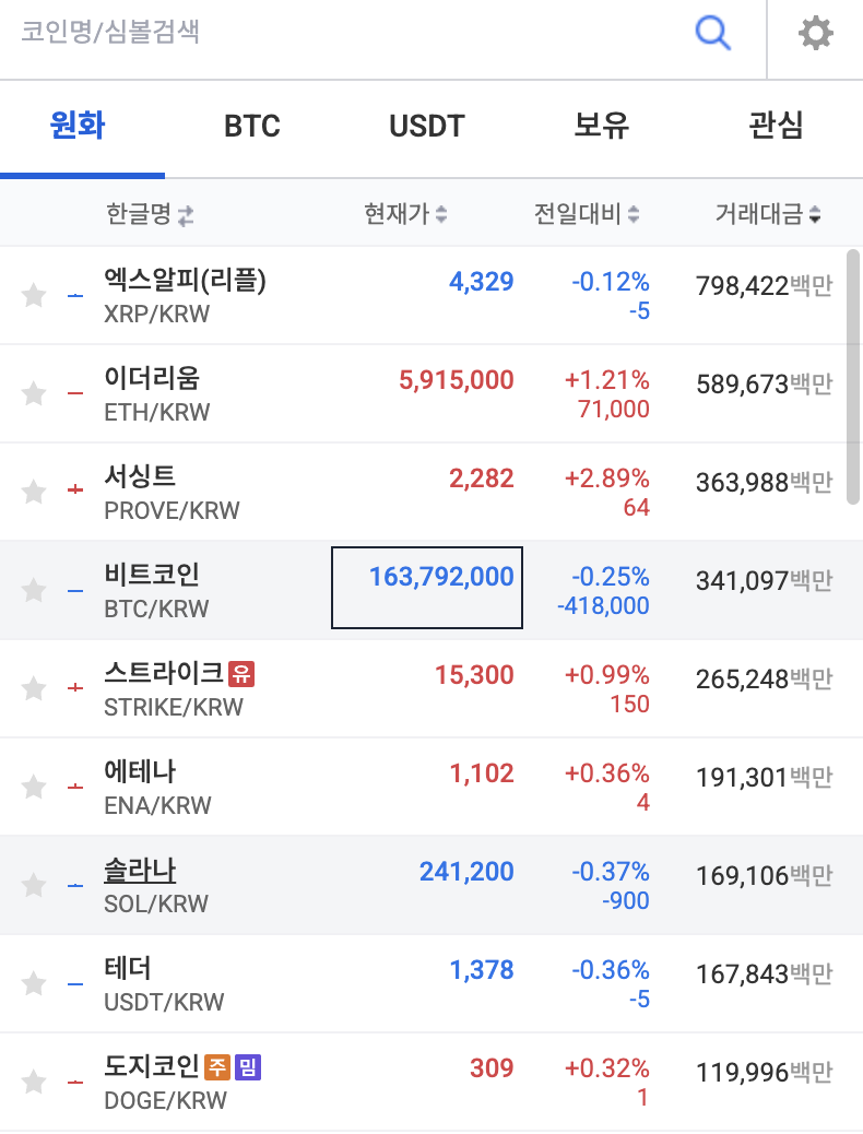 - KRW 마켓에서 비트코인 선택