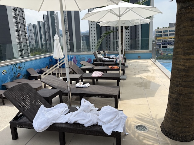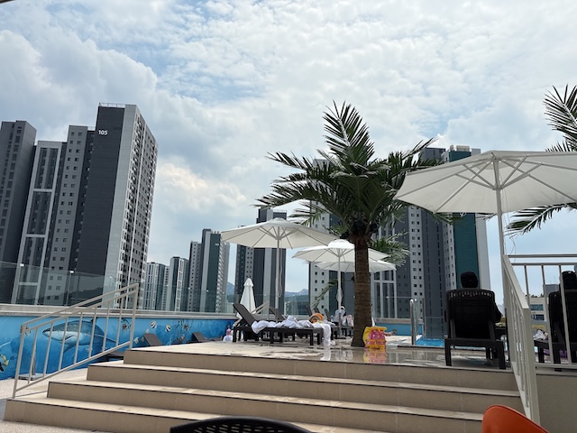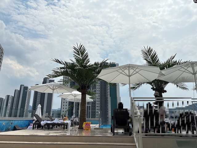 입장 후 바로 수영복으로 갈아입고 6층에 있는 수영장으로 향했어요.