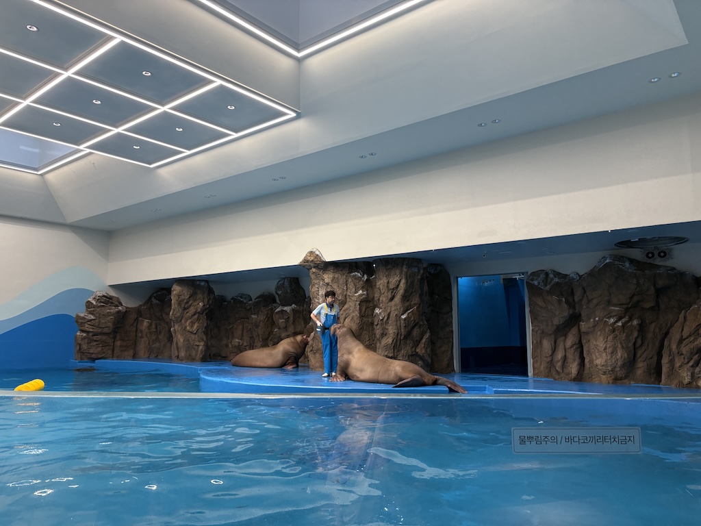 수족관을 지나면 아쿠아플라넷의 마스코트 바다코끼리를 만나 수 있는데요. 저희는 아쉽게도 시간이 맞지 않아서 쇼는 보지 못했습니다.