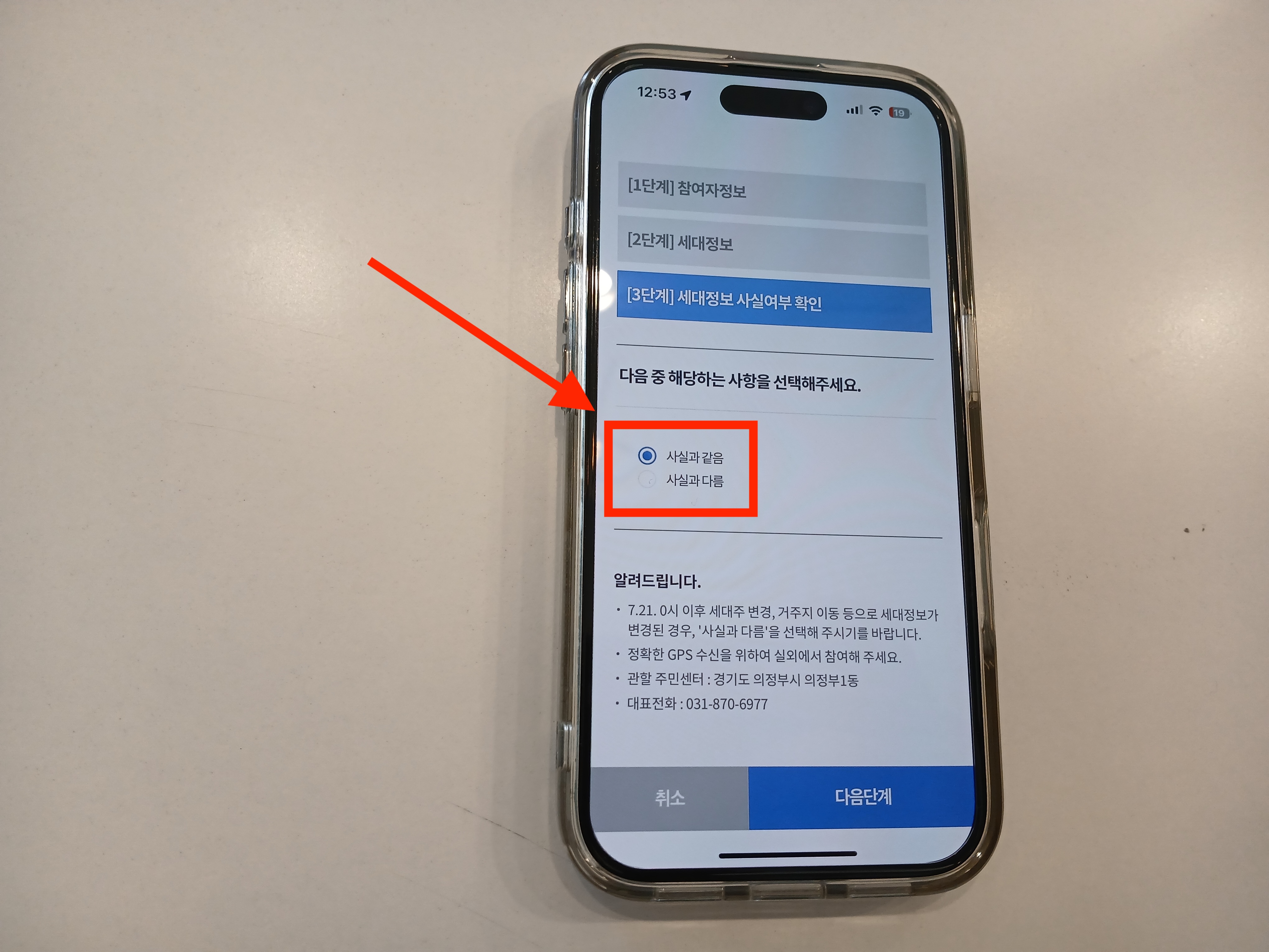 - 방식: 정부24 앱 로그인 후 위치(GPS) 인증 → 세대 대표자가 응답
