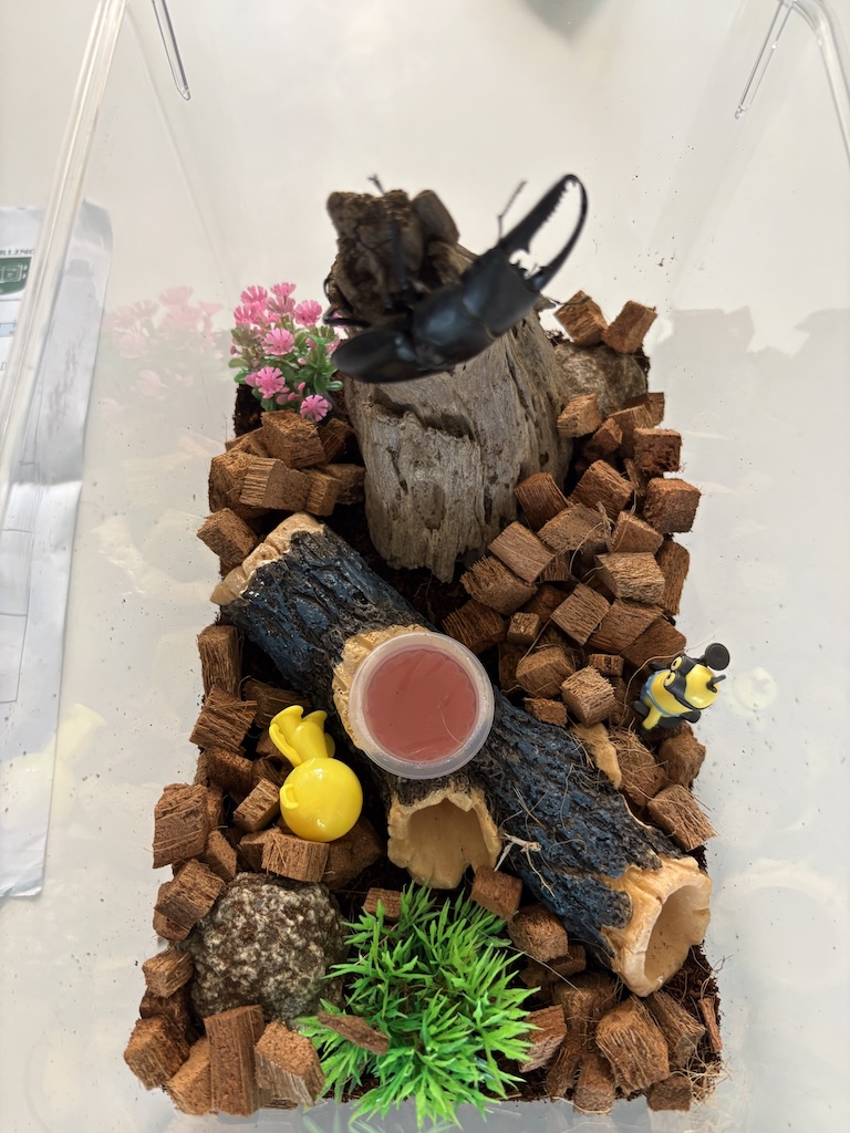 사장님께서 아이들에게 '작은 곤충을 키우더라도 책임감을 가지고 키워야 된다'는 이야기를 해 주셨는데, 그게 아이의 마음에 남았는지 스스로 사슴벌레를 잘 챙기더라고요.