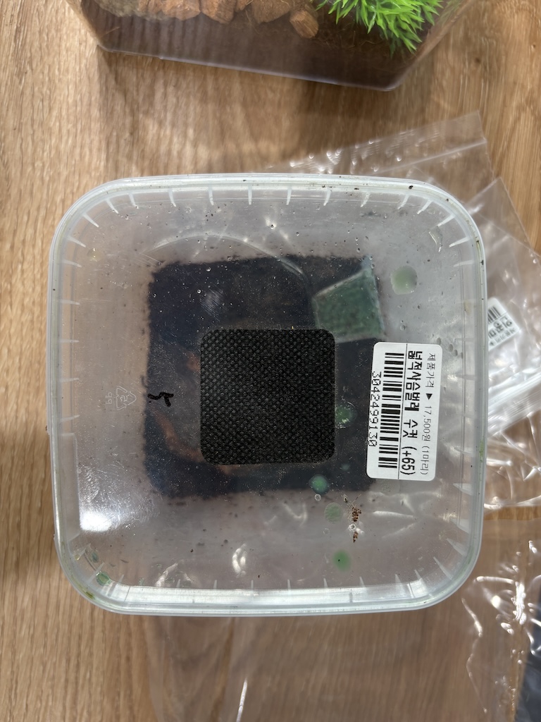 사육장도 크기별로 준비되어 있었고, 사육장에 깔아놓을 수 있는 흙과 코코넛 껍질, 작은 돌맹이와 인공 수초, 젤리통들도 다양하게 구비되어 있었습니다.