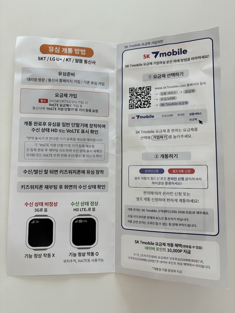 - 새 유심 개통 시: 개통한 유심은 바로 키즈워치폰에 꽂지 말고, 먼저 공기계 스마트폰에 넣어 발신·수신이 정상적으로 되는지 꼭 확인하세요. 아마도 스마트폰에서 발신과 수신을 한번 정도 해야 유심이 활성화되는 것 같아요.